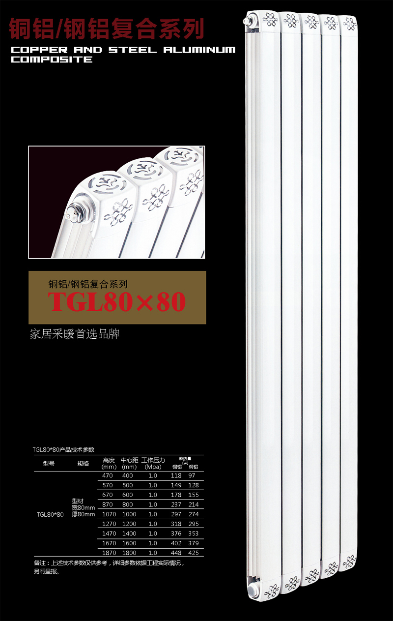 铜铝复合散热器-80×60